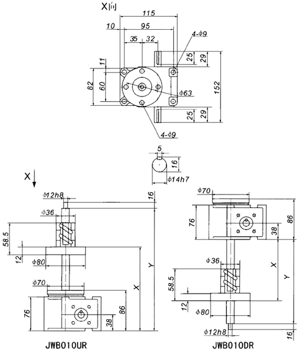 | 當(dāng)前位置:減速機(jī)首頁(yè) >> 產(chǎn)品大全 >> 升降機(jī) >> JW螺旋升降機(jī) >> JWB010絲杠升降機(jī)外形尺寸表 |