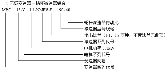 | 當前位置:減速機首頁 >> 產品大全 >> 組合減速機 >> 蝸桿減速器與無級變速器組合 >> 蝸桿減速機與無級變速機組合NMRV系列型號標記 |