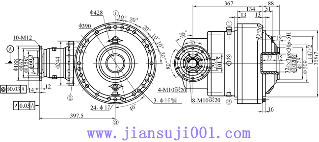 | 當(dāng)前位置:減速機(jī)首頁 >> 產(chǎn)品大全 >> 行星齒輪減速機(jī) >> NS1.5、NS3錐齒輪行星齒輪減速器 >> NS3-63.2錐齒輪行星齒輪減速機(jī)型式與尺寸 |