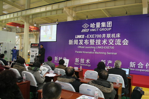 據(jù)哈量集團(tuán)董事長(zhǎng)魏華亮介紹,這款新一代LINKS-EXE700并聯(lián)機(jī)床是哈量集團(tuán)引進(jìn)瑞典愛克斯康(EXECHON)公司并聯(lián)機(jī)床技術(shù),通過(guò)消化吸收及再創(chuàng)新而設(shè)計(jì)制造的具有國(guó)際領(lǐng)先水平的產(chǎn)品。這種機(jī)床具有剛性高、動(dòng)態(tài)及高速性能好、加工范圍大等特點(diǎn),一次裝夾即可實(shí)現(xiàn)5到6面及全部復(fù)合角度的位置加工,特別適用于敏捷加工或復(fù)雜異型件及復(fù)合角度孔和曲面的加工等。