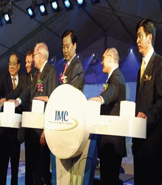 巴菲特同IMC集團(tuán)及大連市領(lǐng)導(dǎo)為IMC大連新工廠開業(yè)慶典啟動按鈕 |