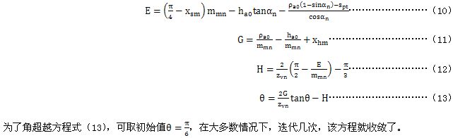 為了計(jì)算齒根危險截面弦齒厚SFn和彎曲力臂hFa,首先要確定輔助值E、G、H和θ: