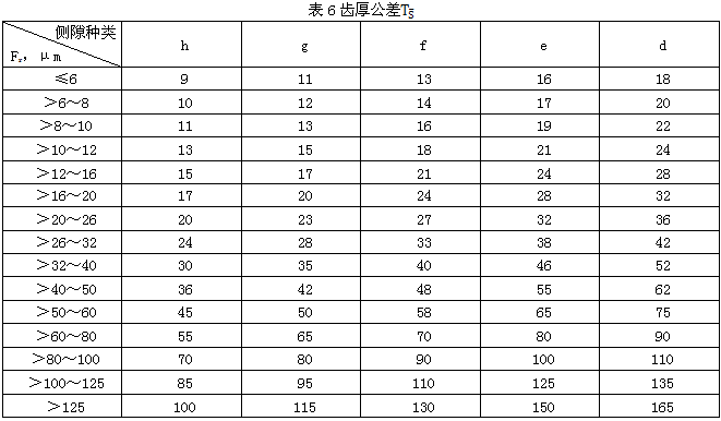 7.3評定齒輪傳動側隙的指標是 和TS。具體數值分別見表5、表6。
