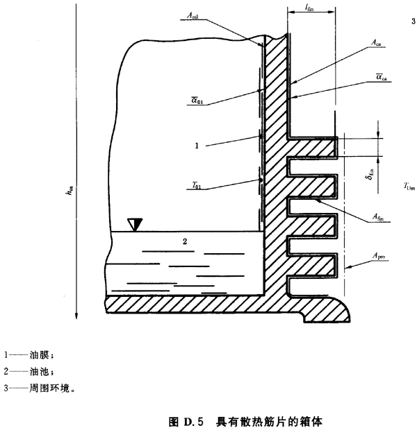 基礎(chǔ)傳導(dǎo)的熱計(jì)算是建立在將齒輪箱基礎(chǔ)分割成幾個(gè)部分,每一部分被看作為一個(gè)單獨(dú)的散熱片,使用從熱力學(xué)得出的已知散熱片計(jì)算公式。沿各部分表面的熱流Aqi相加得到整個(gè)基礎(chǔ)的熱傳導(dǎo)量(見圖D.6)。