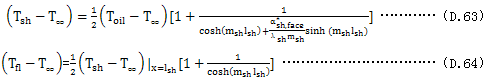 如果不用迭代法,對(duì)由軸與聯(lián)軸器的始端與終端過熱溫度的平均溫度差(Tsh,fl-T∞)取數(shù)學(xué)平均值,可使計(jì)算簡(jiǎn)化。因?yàn)榻?jīng)過軸與聯(lián)軸器的熱耗散大致僅為全部熱耗散的10%,這種簡(jiǎn)化一般在實(shí)際計(jì)算時(shí)是允許的。所以下式是適用的。