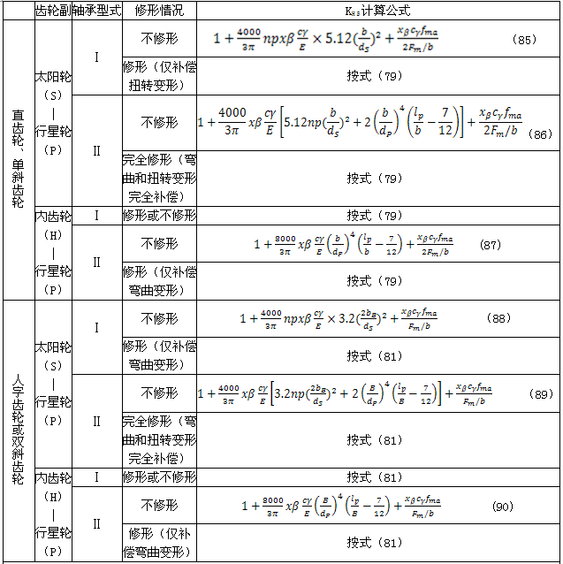 符合項a)中條件的行星傳動中的各齒輪副:太陽輪(S)/行星輪(P)、內(nèi)齒輪(H)/行星輪,其KHβ可按表13中的公式計算。計算時應(yīng)取