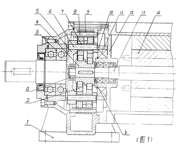 本發(fā)明擺線減速機涉及傳動技術領域,是現代擺線減速機的重大改進。其主要特征在于:(一)機座與針齒殼融為一體,或者針齒殼置于機座內腔;(二)輸出機構由輸出軸、柱銷及均載環(huán)組成,兩側由軸承支承,使擺線輪與偏心軸承處于兩軸承之間。本發(fā)明比之日本住友6000系列擺線減速機軸向尺寸縮短20~34%,外形縮。丁常矗ィ戎拢樱牛子昌X面減速機:軸向尺寸縮短20~45%,重量減輕25~35%,更適宜與主機配套。
