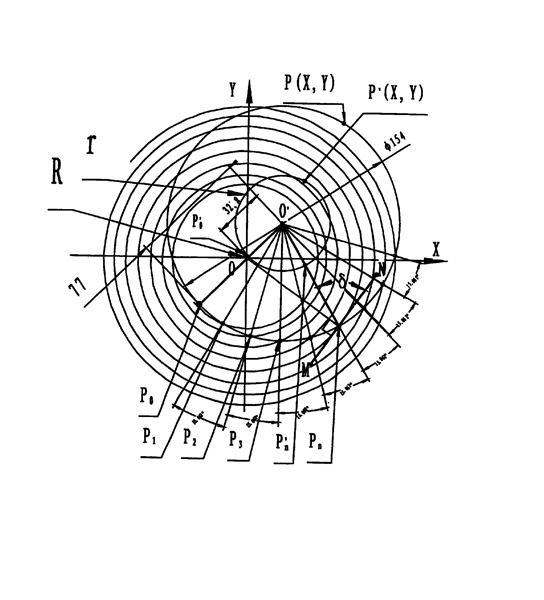 | 一種擺線蝸盤減速機(jī),由機(jī)架、底板和機(jī)身所組成,其特征在于:它由擺線盤,滾盤和機(jī)架組成, 擺線盤由盤體,Ⅰ軸組成,Ⅰ軸緊固于盤體左側(cè)中心孔內(nèi),盤體為圓盤狀,它的前側(cè)面為錐形,錐面為“類單葉雙曲面”,面上有曲線槽,這曲線為“雙勻速擺線”公式為: *** 其中R。遥,r取±|r|;曲線槽的法向切面形狀及各部份幾何參數(shù)計(jì)算關(guān)系的標(biāo)準(zhǔn)化同于齒輪、齒條,或類似于梯形、鋸齒螺紋的幾何關(guān)系; 滾盤由盤身,Ⅱ軸以及K個(gè)滾輪、小軸、小套、鎖母組成;盤身為圓盤狀,它的中心右側(cè)固定著Ⅱ軸,盤周有K個(gè)斜孔,斜孔內(nèi)有螺紋配合著小套,小套左端由鎖母鎖定,小軸右端固定著滾輪,小軸的滾輪左側(cè)及小軸左端有軸承安裝于小套內(nèi);滾輪為單片錐形圓盤狀,它的H側(cè)面為凹錐面或平面,另一J側(cè)面為錐面;滾輪與擺線盤嚙合時(shí)它的H側(cè)凹錐面與曲線槽的凸側(cè)面相靠,J側(cè)錐面與曲線槽的凹側(cè)面相靠,這H、J兩側(cè)面交角d取曲線槽兩側(cè)齒形壓力角的和; 機(jī)架由機(jī)身,左蓋、右蓋、左壓盤、右壓盤組成;機(jī)身是下部有底板的圓筒,底板是四周有安裝孔的平板,左蓋、右蓋均為盤形,它們分別安裝于機(jī)身的左、右兩端面,左蓋中心固定有與其中心線有一偏斜角的斜套,斜套孔內(nèi)用軸承安裝著Ⅰ軸,左壓盤固定于斜套左端,它是緊壓Ⅰ軸左端軸承外圈的圓盤,它中心有孔,用密封圈套于Ⅰ軸左部;右蓋中心固定有大套,大套孔內(nèi)用軸承安裝著Ⅱ軸,右壓盤固定于大套右端,它是緊壓Ⅱ軸外端軸承外圈的圓盤,它中心有孔,用密封圈套于Ⅱ軸右部;Ⅰ、Ⅱ軸均伸出機(jī)架,兩軸中心距為R+r,滾盤一側(cè)的滾輪與擺線盤一側(cè)的曲線槽達(dá)正確嚙合而另一側(cè)為分離狀態(tài)。 |