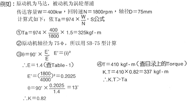3.  求出T 值,并且需K·T >T ·實(shí)際回轉(zhuǎn)速是否超過(guò)容許的最大回轉(zhuǎn)速。(K查表2)