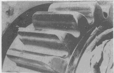 具有中等磨損的小齒輪齒面。齒面上工作節(jié)曲面的位置清晰可辨。