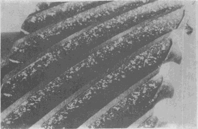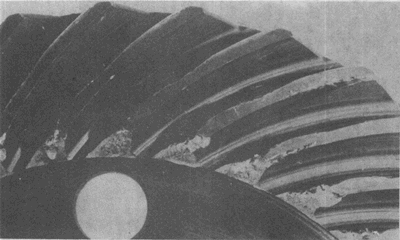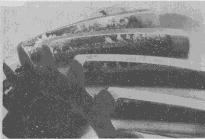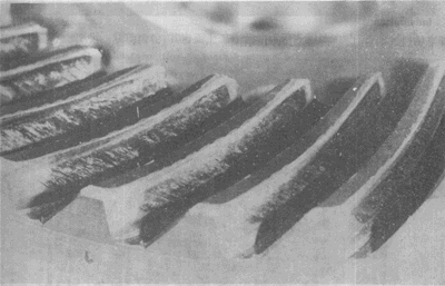 弧齒錐齒輪輪齒上的嚴(yán)重膠合。有時(shí)這種損傷引起工作溫度升高。