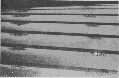 大齒輪齒面的初期點(diǎn)蝕。點(diǎn)蝕密度最大區(qū)與表面載荷最高區(qū)相一致。