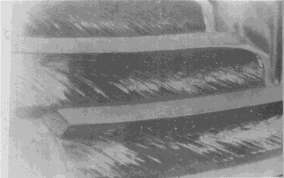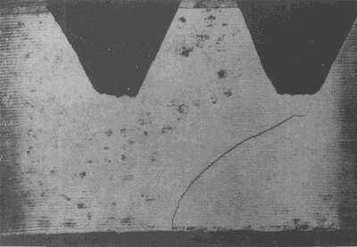 在大齒輪齒頂形成的淬火裂紋(這種裂紋通常都在這個(gè)區(qū)域出現(xiàn))。