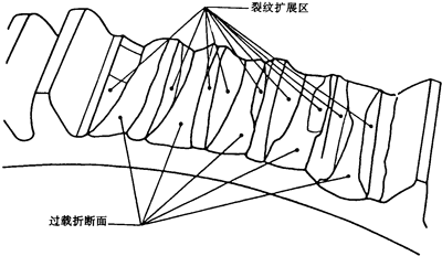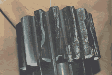 過(guò)載折斷通常使齒輪的幾個(gè)齒損傷,而由疲勞裂紋引起輪齒折斷一般是折斷一個(gè)輪齒。
