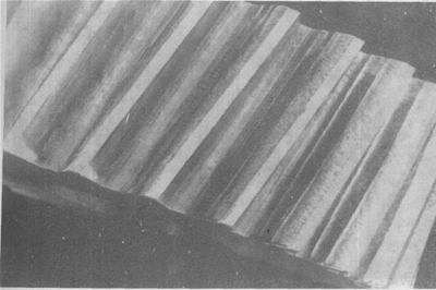 齒面上垂直于滑動(dòng)方向的微小皺紋。這些小皺紋本身也是波狀的,而不是直的,看上去其形狀如同風(fēng)吹沙土,水沖泥漿一樣,只是規(guī)模小得多而已。