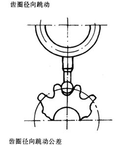 在齒輪一轉(zhuǎn)范圍內(nèi),測頭在齒槽內(nèi),于凸齒或凹齒中部雙面接觸,測頭相對于齒輪軸線的最大變動量。 |