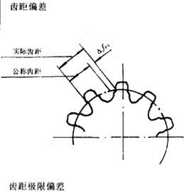 在檢查圓上,實際齒距與公稱齒距之差