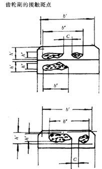 沿齒長方向:接觸痕跡的長度  (扣除超過模數(shù)值的斷開部分C)與工作長度  之比的百分?jǐn)?shù),即