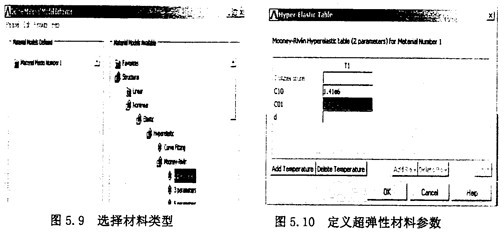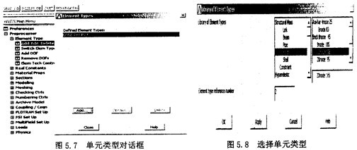 考慮到分析橡膠材料所能用到的單元,選擇Main Menu>Preprocessor>Element type>Add/Edit/Delete,在出現(xiàn)的對話框中,單擊“Add”,如圖5.7所示。這時又出現(xiàn)一個“Library of Element Type”對話框,在左面的列表欄中選擇“Structural Solid”,在其右面的列表欄中選擇“2Onode186”,單擊0K按鈕,如圖5.8。再在單元對話框中單擊Close按鈕關閉對話框。