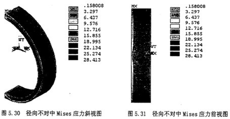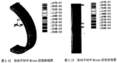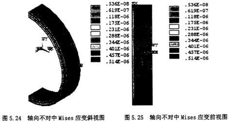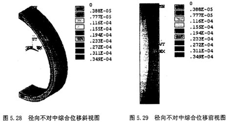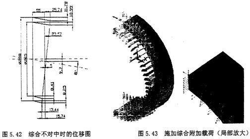 重復5.4.2節(jié)中的(1),(2),(3),(4),(5),(6)步驟。然后開始施加綜合的附加載荷。由于綜合位移使得橡膠圓環(huán)附加的徑向拉應力σax,附加的剪應力τrad,附加的角向應力σax,以及由橡膠圓環(huán)旋轉扭矩產生的剪應力τrot。所以綜合不對中的應力情況應該是σax、σax、σax與σrot的疊加。施加綜合附加載荷后的圖形圖5.43所示。
