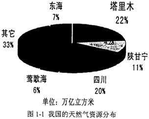 3。此外,從圖1-1可以看到,陜西、四川、青海等地的天然氣儲(chǔ)量也都十分可觀,氣田分布的西傾狀況比較明顯。