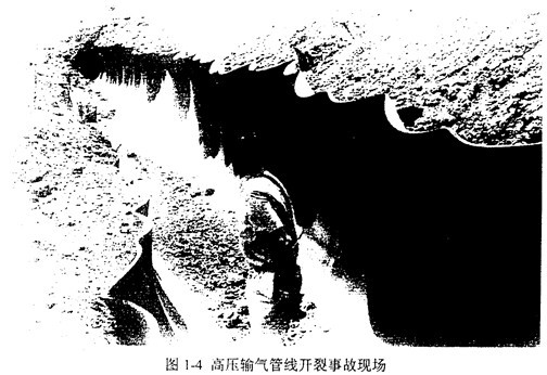 圖1-4為高壓輸氣管線開裂事故現(xiàn)場(chǎng)。