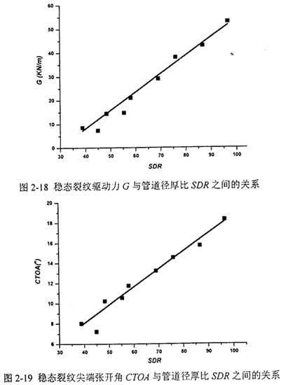 在裂紋穩(wěn)態(tài)擴(kuò)展的條件下,動(dòng)態(tài)能量釋放率G或裂紋尖端張開(kāi)角CT(劉同管道內(nèi)壓p0或徑厚比SDR之間均呈線性關(guān)系。由此關(guān)系可便捷地推算任意設(shè)計(jì)參數(shù)下的裂紋驅(qū)動(dòng)力。通過(guò)和第四章介紹的小試件實(shí)驗(yàn)的動(dòng)態(tài)斷裂韌性結(jié)果相對(duì)照,可以得到裂紋止裂或擴(kuò)展的結(jié)論。