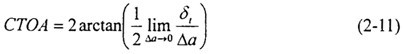 裂紋尖端張開(kāi)角CTOA(Crack Tip Opening Angle)最早被用來(lái)分析核電站管路的穩(wěn)態(tài)裂紋擴(kuò)展,后來(lái)用于輸氣管線和航空工業(yè)。如圖2-2,與裂紋張開(kāi)角COA不同,CTOA對(duì)應(yīng)于一定的斷裂擴(kuò)展?fàn)顟B(tài),不隨測(cè)量點(diǎn)的位置而改變。CTOA在數(shù)學(xué)上可以按下式定義: