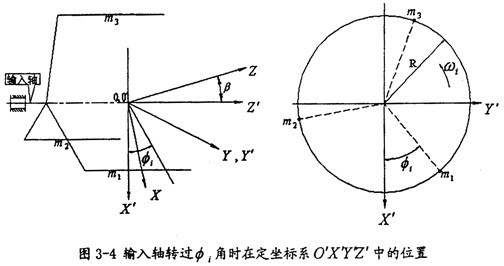 1位于與固定平面OXZ重合的動平面o″X″Z″內(nèi),當(dāng)輸入軸轉(zhuǎn)過一角度