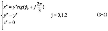 故三叉桿軸頸的軸線方程由坐標(biāo)系O″X″Y″Z″轉(zhuǎn)到坐標(biāo)系O′X′Y′Z′為: