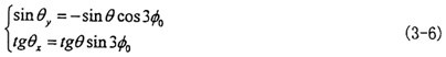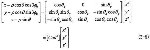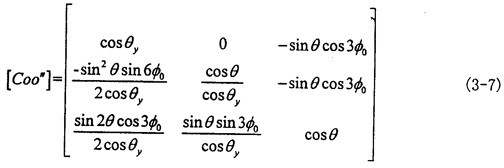 由式(3-6)可知|θy|<θ,|θx|<θ一般來說θ值非常小,則θy和θx則更小。到此方向余弦矩陣[Coo″]的所有項均可求出。其具體的形式如下(為簡化書寫將θy作為已知參數(shù)代入):