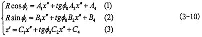 由式(3-1o)中的(1)、(2)兩式,消去x″,即可求出輸入角 同輸出角 的