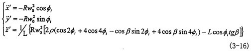 由曲線圖3-14可以看出,小桿球面中心P沿軸頸的線加速度,變化頻率為一個回轉(zhuǎn)周期2次。隨兩軸夾角β的增大其最大值增長較快,它的值可以作為動力分析和設(shè)計計算的重要依據(jù)。