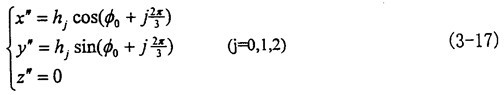 為求出這個參數(shù)方程,我們必須解決動坐標(biāo)系O″X″Y″Z″同定坐標(biāo)系OXYZ之間的坐標(biāo)變換矩陣[Moo″]。