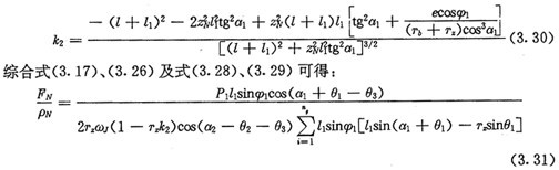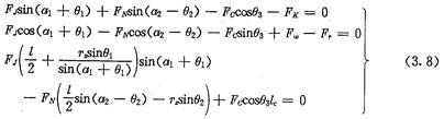 由于考慮了慣性力,所以力Fc 不通過交點Q,lc也是一個未知數(shù)。若根據(jù)輸入功率確定出FJ,則方程組(3.8)只剩下FN、FC及lc三個未知數(shù)了。