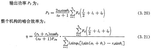 計算時,先根據(jù)輸入功率P1及轉(zhuǎn)速ωJ由(3.19)式計算出FJm,然后對每一工作推桿由式(3.17)計算出FJi,由式(3.10)式及式(3.11)計算出Fci及lci,最后代入式(3.21)計算出效率η。