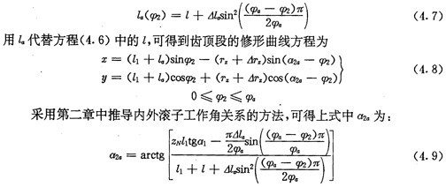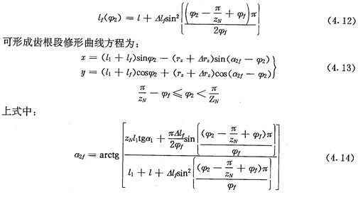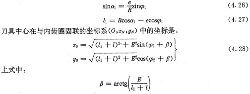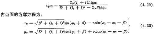 若令(4.30)式和(4.31)式中的E=0,得到的就是無偏距時(shí)的內(nèi)齒圈齒廓理論方程式(2.21)及公法線長(zhǎng)度(4.18)式。