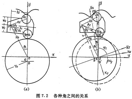 上式中h1、h2、W1和W2都是擺動(dòng)中心與內(nèi)外滾子中心相對(duì)位置的參數(shù),見(jiàn)圖7.2(a)。