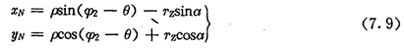 上式中,a為內(nèi)齒圈齒廓在M2點(diǎn)的法線與yN軸的夾角,它等于外滾子中心軌跡在O2點(diǎn)的切線正向與xN軸正向的夾角(圖7.3)