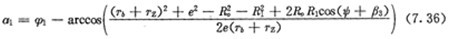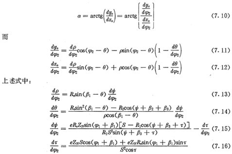 2點(diǎn)向徑與法線的夾角,可由圖7.3求得,為: