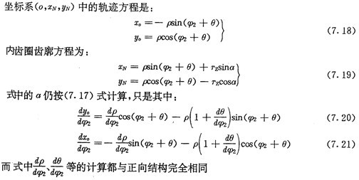 7.2.3內(nèi)齒圈的齒廓方程