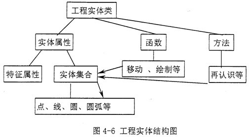單個(gè)實(shí)體是通過(guò)點(diǎn)、直線、圓、圓弧等信息的集成而體現(xiàn)的,因此,在對(duì)實(shí)沐類(lèi)進(jìn)行定義時(shí),可充分利用AutoCAD中的“實(shí)體集合”這個(gè)設(shè)計(jì)概念,把*.dwg圖形數(shù)據(jù)庫(kù)中的若干幾何信息集成起起來(lái),使之成為一個(gè)整體,再將此“實(shí)體集合”并入實(shí)體類(lèi)的一個(gè)屬性(見(jiàn)圖4-6),當(dāng)實(shí)體在繪制、移動(dòng)等操作中被調(diào)用。
