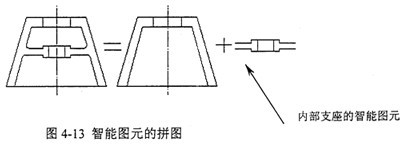 對(duì)于每一張工程產(chǎn)品圖紙,盡管圖與圖之間是千差萬(wàn)別的,但是一個(gè)產(chǎn)品圖的某個(gè)結(jié)構(gòu)總是可以從其他零產(chǎn)品圖中找到相同或相似的。為了有效地利用這些相同或相似的圖形單元,提出拼圖法繪圖:在裝配圖中,一個(gè)機(jī)器由若干個(gè)零件圖組裝而成;而在零件圖中,一個(gè)零件可看作是由若干圖形單元組成,如:一個(gè)零件外型圖形單元和若干個(gè)零件內(nèi)腔圖形單元(包括開(kāi)孔)組成。歸納來(lái)說(shuō),無(wú)論是裝配圖還是零件圖,都是由若干圖形單元拼成,而且不是簡(jiǎn)單的把圖形放到一起,還存在圖形單元的變化。例如:由零件圖拼成裝配圖中,需要有部分零件圖的打斷、消隱等工作;由零件外型圖形單元和內(nèi)腔圖形單元組成零件圖時(shí),更要涉及到圖形圖形之間的打斷、消隱、圓角化等等。這就決定了圖形單元應(yīng)具有部分智能化,命名為智能圖元,它與普通的圖形單元最大的不同在于:智能圖元可以在不同的周?chē)鷪D形環(huán)境下自動(dòng)調(diào)整其表現(xiàn)形式。這種以“智能圖元”為設(shè)計(jì)單元的設(shè)計(jì)方法稱為智能圖元法。