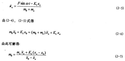 然后取下質(zhì)量ma,維持推力不變,在振動(dòng)臺(tái)上另加一質(zhì)量mb,重復(fù)以上試驗(yàn),由式(2-7)算得m0,將兩次試驗(yàn)所得m0取平均值,得到圈質(zhì)量。