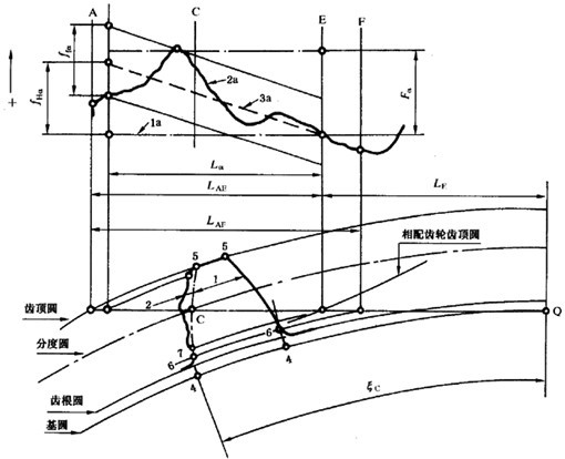 如果在這種情況下,嚙合相對(duì)的兩端點(diǎn)的齒廓偏差也不相同,則切向綜合偏差圖上的齒廓(一齒綜合)成分也將受到影響。