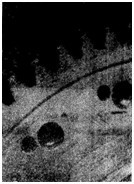 本圖是圖40中的人字齒輪局部放大,齒面到處可見大量均勻分布的電蝕斑點(diǎn)。