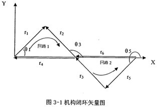 本章所要做的工作就是對(duì)上一章選出來的二自由度連桿機(jī)構(gòu),進(jìn)行運(yùn)動(dòng)學(xué)分析,初步選定機(jī)構(gòu)的結(jié)構(gòu)參數(shù),分析其輸入輸出速度能否滿足設(shè)計(jì)要求,為以后的動(dòng)力學(xué)分析做依據(jù)。