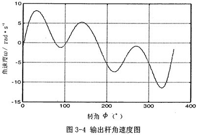 首先由圖3-2可以看到,若機(jī)構(gòu)結(jié)構(gòu)參數(shù)設(shè)計(jì)恰當(dāng),并且調(diào)整中間滑塊3偏移到合適的位置時(shí),可在一定范圍內(nèi),產(chǎn)生一個(gè)反向的速度波適度抵消原速度波動(dòng)。再由圖3-3可知,在未加入第二自由度時(shí),加速度變化值不大,說明阻力矩和電機(jī)主動(dòng)力矩不會(huì)受到大的影響,不致導(dǎo)致原機(jī)械系統(tǒng)的各項(xiàng)參數(shù)發(fā)生大的變化。