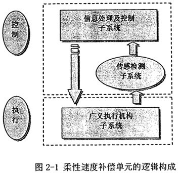 柔性速度補償單元由兩部分組成,包括機械運動子系統(tǒng)、信息處理及控制子系統(tǒng),其中后者又包括信息處理與控制、傳感檢測兩部分。其邏輯組成如圖2-l所示。