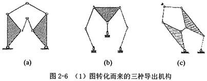 由(1)圖,取不同的構件為機架,經過特定化后,可轉化為三種導出機構,如圖2-6。